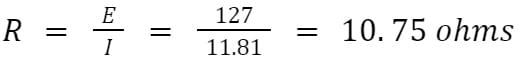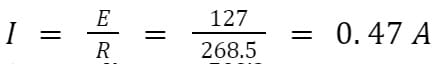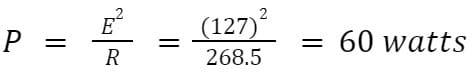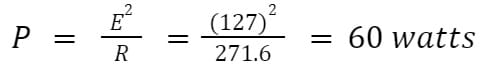 Así, por ejemplo, si la lámpara tiene una resistencia de 271.6 ohms, su potencia se puede calcular a partir de su voltaje de operación como: