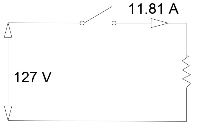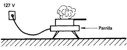 Ejemplo 2. En una parrilla eléctrica están ilegibles algunos datos de placa y no se puede leer la potencia, pero cuando se conecta a una alimentación de 127 volts demanda una corriente de 11.81 A, calcular la resistencia y la potencia de la parrilla.
