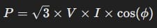 - Cos(ϕ) es el factor de potencia (una medida de cuán eficientemente el motor utiliza la electricidad), por lo general viene especificado en los datos de la placa del motor.